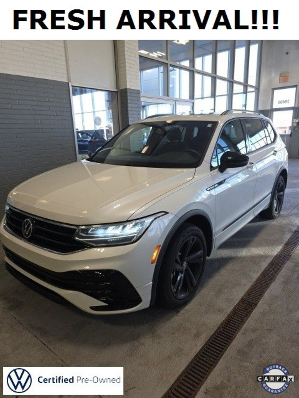 Certified. Recent Arrival! 2023 Opal White Volkswagen Tiguan 2.0T SE R-Line Black